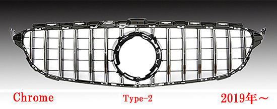 C205/Cクーぺ(前期型)用 C63ルック・(F)グリル (2段トリム・シルバー色/カメラ穴無用/社外品!) |